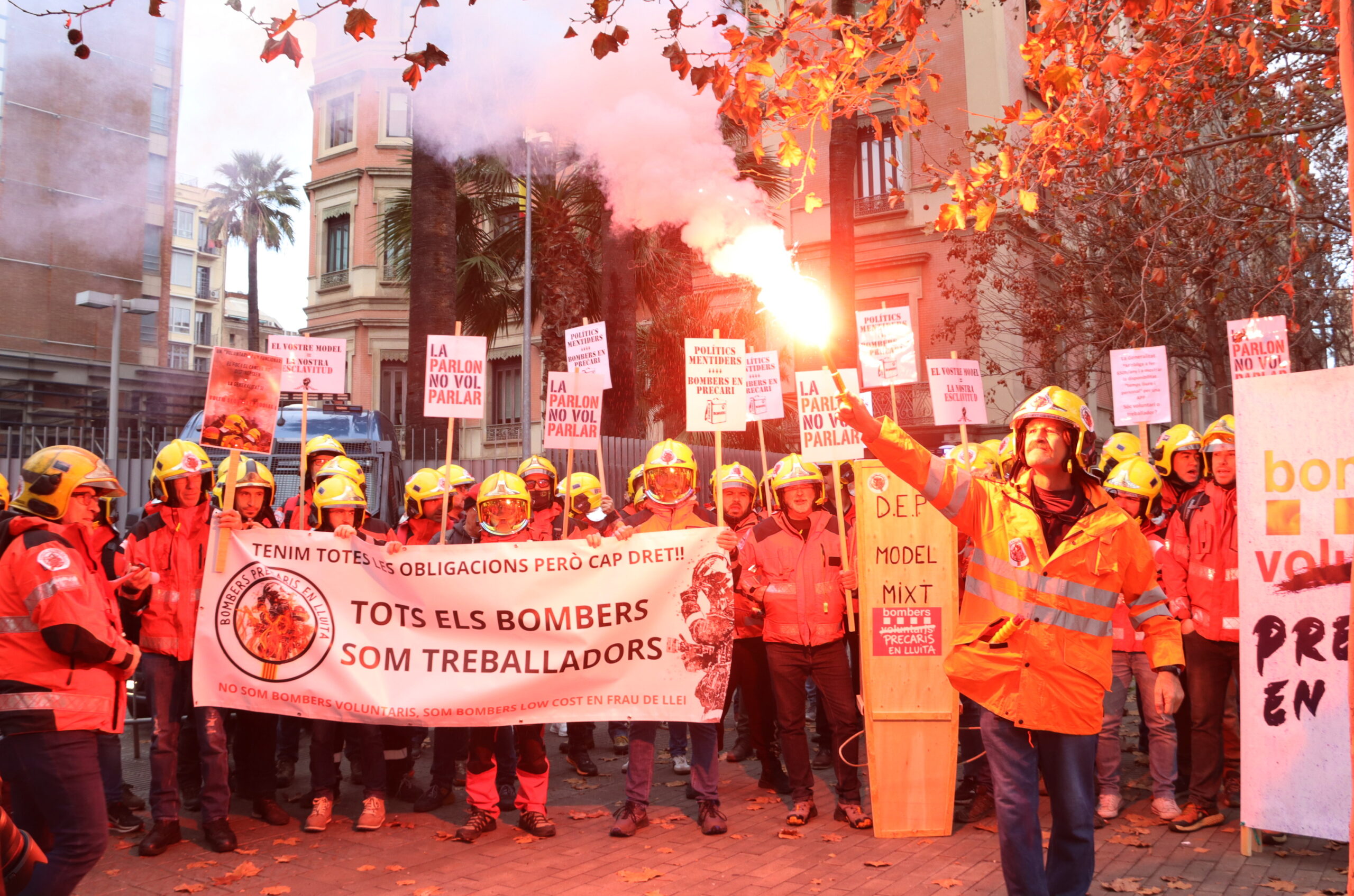 A Catalunya hi ha un model mixt de bombers, en què conviuen professionals i els coneguts com a voluntaris. El col·lectiu en lluita indica que en la darrera campanya forestal han representat un terç dels efectius, uns 1.500 sobre un total de 4.500. Els 410 voluntaris demandants es troben en parcs d’arreu de Catalunya, concretament, de 61 dels 75 parcs de bombers voluntaris i 10 mixts.
