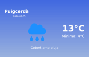 Avui, 5 de març de 2026, a Puigcerdà, esperem una jornada marcada per condicions meteorològiques diverses que caldrà tenir en compte si planeges activitats a l’aire lliure. A continuació, detallem la previsió del temps d’avui en aquesta zona.