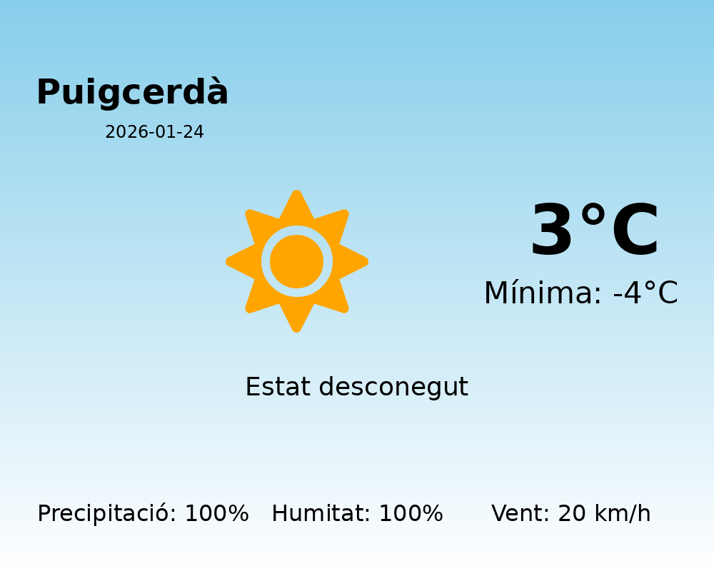 Avui, 24 de gener de 2026, es presenta un dia plenament hivernal a Puigcerdà, amb una meteorologia marcada per condicions adverses. La temperatura màxima no superarà els 3°C, mentre que la mínima caurà fins als -4°C, cosa que ens recorda que ens trobem en el ple cor de l’hivern.